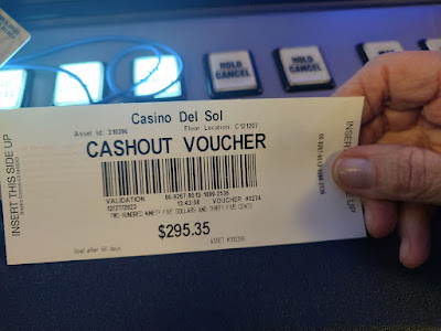 Pretty good, eh? our total wining was over $5000.00 Cha Chings. Pretty good for an overnight stay. We always share the winnings.
